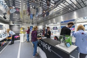 Die Ausstellung im InnoTruck lädt zum Anschauen, Anfassen und Ausprobieren ein. Foto: BMBF-Initiative InnoTruck