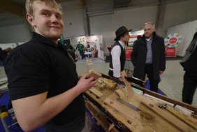 Der größte Stand der Messe befindet sich in Halle 7, Stand B2. Diese fast 240 m² große Aktionsfläche füllt die Kreishandwerkerschaft Gießen gemeinsam mit ihren 15 Mitausstellern mit Leben. Mit dabei sind die Handwerkskammer Wiesbaden, die Bäcker-Innung Gießen, die Bildhauer- und Steinmetz-Innung Oberhessen, die Fotografen-Innung Hessen-Rheinhessen, die Friseur-Innung Gießen, die Innung des Bauhandwerks Gießen, die Innung des Kraftfahrzeuggewerbes Oberhessen, die Innung für Sanitär-, Heizungs- und Klimatechnik Gießen, die Maler- und Lackierer-Innung Gießen, die Schornsteinfeger-Innung, die Tischler-Innung Gießen sowie das Berufsbildungs- und Technologiezentrum (BTZ), die Friseur Akademie Süßel, Neils & Kraft GmbH & Co. KG, Richard Stephan Fotografie. Neben Informationen zur Aus- und Weiterbildung im Handwerk erwarten die Besucher hier attraktive Mitmachangebote. Die eigenen Fähigkeiten können in den vorgestellten Berufsbildern getestet werden und die Entscheidung erleichtern, in welche Richtung es gehen soll - die Möglichkeiten sind vielfältig.