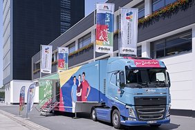 Im M+E-Truck kann man sich informieren und Kontakte zu den Mitgliedsunternehmen vermittelt bekommen. Foto: Hessenmetall